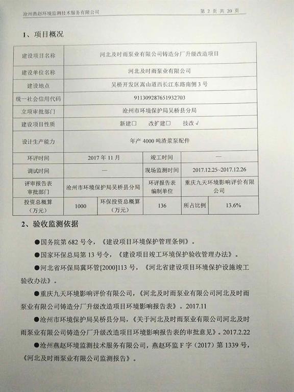 環(huán)評公示-河北及時雨泵業(yè)有限公司