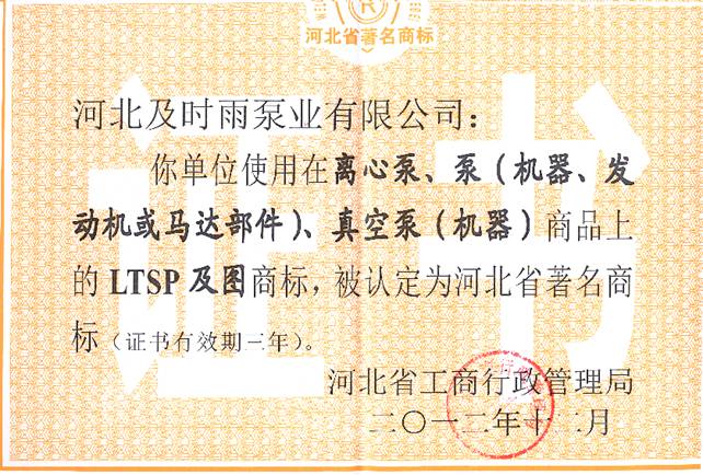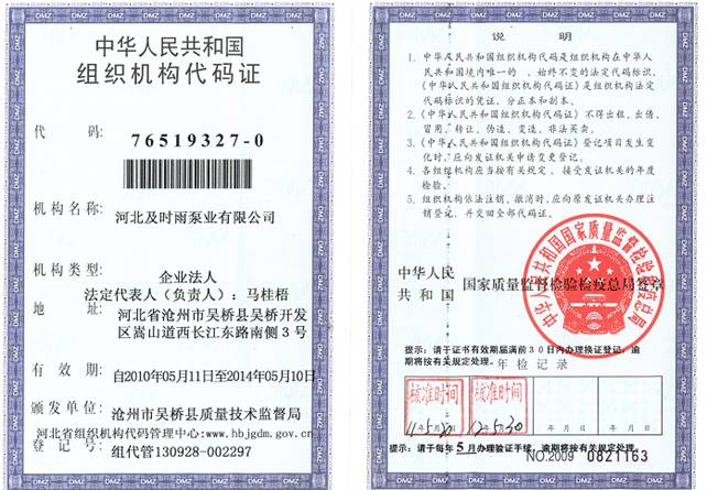 企業(yè)資質(zhì)-河北及時(shí)雨泵業(yè)有限公司